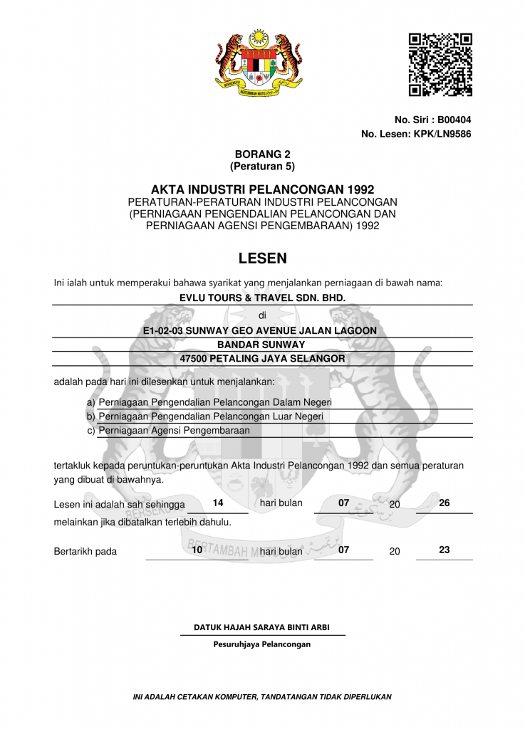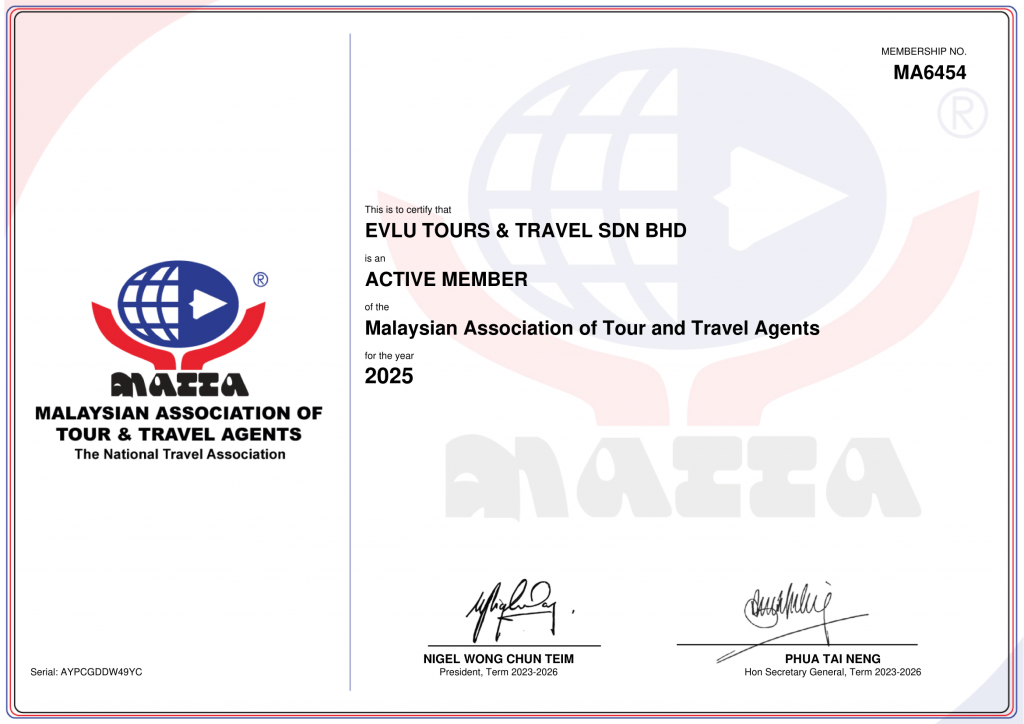 Well known as EVLU in the travel and tour market, the company was born in 2019. EVLU is recognised by the following as one of the leading and reputable travel agents in Malaysia.